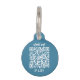Customisable blue QR code pet ID tag. This pet tag features a scannable QR code that enables anyone with a smartphone to access important information about your pet. You can easily generate a brand new QR code on the design via the "personalise this template " feature. Just add the URL of your contact webpage / social media page or you can even add your email address to the area provided.
