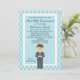 Start your celebration off with this adorable invitation for that special boys First Holy Communion. It has a light and dark blue large polka dot border. in the centre there's a light blue centre with a white border around it There's an adorable boy wearing a grey suit with a blue tie . He has brown hair. Check out the many other items in this line such as labels, postage, thank you notes, and more.