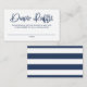 Please bring a diaper in any size for a chance to win a special prize. Modern and simple diaper raffle game card. This customisable diaper raffle card features a cute modern calligraphy and stripes pattern on a navy blue background. Personalise by adding your own details. This navy blue and white diaper raffle card are perfect for It's a Girl baby shower.