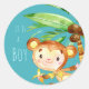 Blue Cute Monkey Baby Boy Announcement Classic Round Sticker