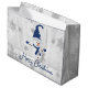 Gift your Christmas presents this holiday season with a Blue Cute Snowman Holiday Gift Bag. Gift bag design features a cute snowman in a hat, scarf and gloves adorned with grey and white snowflakes against a grey grunge background. Additional gift and holiday items available with this design as well.
