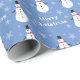 Blue Cute Snowman Snowflake Merry Christmas Wrapping Paper