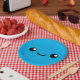 Illustration of a cute face with a blue background.