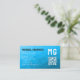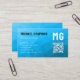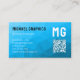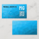 Blue cyan geometric mesh pattern QR code Monogram Business Card