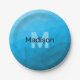 Blue cyan gradient geometric mesh pattern Monogram Paper Plate