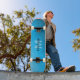 Blue cyan gradient geometric mesh pattern Monogram Skateboard