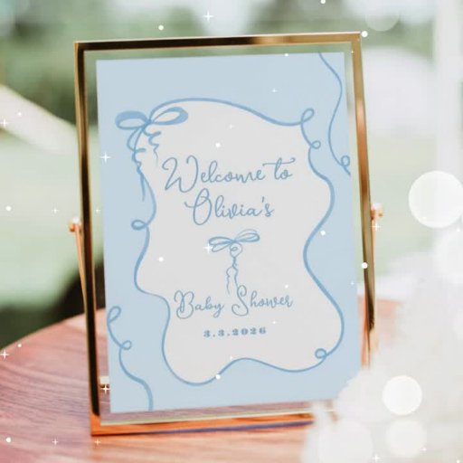 Blue dainty wavy bow baby shower welcome poster