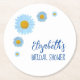 Blue Daisies Floral Bridal Shower Round Paper Coaster