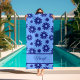 Blue in blue daisy pattern bath towel.