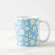 An adorable coffee mug featuring a light blue daisy flower pattern design. The perfect gift for Mother's Day, Mum's birthday or other occasion!