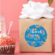 Blue Daisy Vintage Bouquet Pattern Classic Round Sticker. Sweet, feminine, girly, pretty & stylish flowers pattern design by Dreaming Cocoon. Personalise the sticker with your names. You may customise the text 1 - Thank you and the text 2 - Love, with your own words. This pretty floral thank you sticker is a perfect idea for a party favour, personalised gift/parcel and an envelop seal.