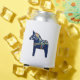 The design on this can cooler is from a wooden horse designed, carved and painted by Julia Morrill