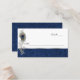 Elegant wedding reception place / escort card done in white, with a blue on blue damask pattern edged in silver running along the bottom front. Graphics of a silver tone flourish, on the left side, has a peacock feather and pearl decorations. Blue text, on the front, can be deleted if you want blank cards. Lovely addition to our Blue Damask and Peacock Feather Wedding invitation and products.