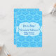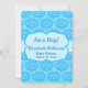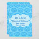 It's a Boy! This stylish blue damask invitation is great a boy baby shower. Sophisticated and whimsy, this invitation features a blue damask on a layered turquoise blue background. A light blue motif sits on a light blue strip and provides an area to Personalise. Customise the back with the date, place, RSVP, and stores registered. The background on the back is also the damask design with the emblem in a larger size for the shower details and information. Fully customisable for your shower party. This damask pattern is original art by Phyllis Dobbs and coordinates with other products in this store.