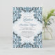 An elegant, damask-pattern invitation in hues of blue. (<a href="https://www.freepik.com/free-photos-vectors/wedding">Wedding vector created by freepik - www.freepik.com</a>). <br/><br/>The card is easy to customise with your wording, font, font colour, paper shape options and choice of six paper types.<br/><br/>Not exactly what you're looking for? All our products can be custom designed to meet your needs at no extra charge.<br/><br/>Simply contact us at heartfelthelper@gmail.com.<br/><br/>Coordinating products available: Just ask us!"