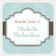 Blue damask bookplates square sticker