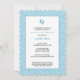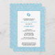 Sweet blue and white modern damask pattern adorns this modern shaped baby shower invitation. The feet can be removed if desired.