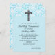Start your celebration off with this elegant yet dainty invitation for that special boys Holy Communion. It has a blue damask on the top of the invite. On the top in the centre there is a black and white damask cross. Check out the many other items in this line such as labels, postage, thank you notes, and more.