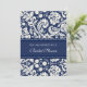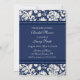 Bridal shower invitations in elegant dark navy blue and cream off white classic floral damask pattern, elegant and feminine, customisable with your shower details. Also available in thank you cards and invitations for the bridal party.