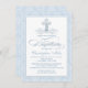 Boys blue damask baptism invitation with blue pearl cross and elegant script on a pretty baby blue damask background. This elegant blue damask baptism invitation is easily customised for your event by simply adding your details in the font style and colour, and wording of your choice.