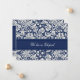 Elopement announcement cards in elegant dark navy blue and cream off white classic floral damask pattern, fully customisable with your names and wedding details, the perfect way to announce your elopement to friends and family. Available in a wide range of matching wedding products.
