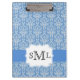 Blue Damask Monogram Custom Clipboard