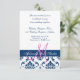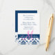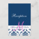 Blue Damask Monogram Wedding Reception Enclosure Card