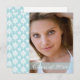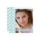 This 5.25x5.25 chic graduation announcement can be used to invite guests to your graduation ceremony or to a party celebrating your graduation. On the front, there is a trendy baby blue and white damask pattern border on the left side with a place on the right for you to easily personalise this with your photograph. At the bottom, there is a soft blue band with Class of and the year of your graduation written. On the backside, you can customise the party / ceremony details.