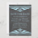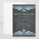 Elegant and chic Deco Chalkboard Save the Date Announcement featuring a trendy chalkboard texture look background and a pair of light blue art deco swirl borders. This lovely save the date invitation is perfect for announcing your art deco 1920's themed wedding. Easy to customise, simply add your wedding details. Click "Customise It" to find additional personalisation options.