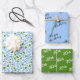 Colour coordinated wrapping paper featuring blue Delphinium flowers, Happy Birthday and Age on different colour backgrounds. Edit the age for birthdays. You can change Happy Birthday, to Happy Anniversary, or any other occasion.
