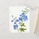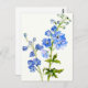 Everyday fine art botanical postcard featuring two blue delphinium flowers spikes. Print is taken from original painting in watercolour by artist Sarah Trett.