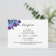 Purple and turquoise blue Dendrobium orchid wedding reception enclosure card. Simple wedding reception enclosure card design that features a beautiful orchid variety called a blue dendrobium. It is teal / turquoise in colour paired with violet and royal purple. A great flower choice for peacock wedding colour theme.