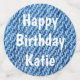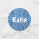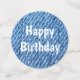 Blue denim jean material. Personalise with name and celebration of your choice.