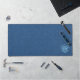 Blue denim fabric texture with a stand-in tailor logo and customisable text in light blue. You can customise text and change the colour of the font.