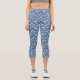 Blue Denim Palm Fronds Slimming Capri Leggings for a Fresh Tropical Look