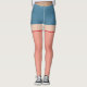 Blue denim shorts with pale skin tone legs with red and white fishnet stockings leggings