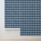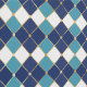 This festive wallpaper features argyle style diamonds in light and dark blue pattern with gold line accents.
