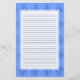 Simple blue tone stationery with a background border pattern of blue chequered diamonds. Writing area in centre is lined and semi-transparent with background pattern showing through.