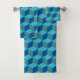 The towel set shows a monochrome blue diamond design where every three diamonds form a hexagon shape. For customisation enquiries please contact info@KBMD3signs.com