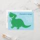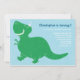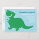 This adorable birthday invitation features a happy green T-Rex dinosaur and a blue background. Perfect for a boy's birthday party.