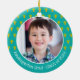 This personalized photo ornament is a wonderful keepsake for your favorite kindergarten grad or their family members. The front boasts a whimsical and playful visual of a cute, bold, kawaii, navy blue t-rex, and fun, handwritten typography over a light turquoise blue and white striped background. An adorable palm tree pattern overlaying turquoise blue is on the rim, framing the illustration. On the back is the photo of your choice. Personalize the custom text with your grad’s name and class year. Personalize the custom text with your graduate’s name and special message. Choice of ceramic, metal, glass or premium metal frame materials and a circle or square shape. Matching invites, banners, paper plates and napkins, stickers and other graduation goodies are also available in this cool and special collection. Guaranteed to preserve cherished memories of this special occasion!