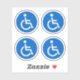 Round stickers featuring the classic disabled symbol, a man in a wheelchair on a blue background. Sheet with four stickers.