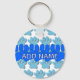 Cartoon dog paw print in blue. Personalized keychains. Edit name to customize.