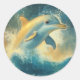 Blue Dolphin Jumping in Waves Classic Round Sticker