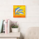 Make a splash with this clock that features blue dolphins dancing in the tropical sun and the catchphrase "Make Waves Everyday!" The perfect way to add a bit of whimsy to your child's room! Customise by adding a name or message.
