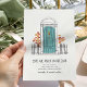 Charming and modern moving announcements let friends and family know about your new home sweet home! Design features a sketched blue door illustration framed by bricks, with "come and knock on our door" beneath. Personalise with your new address and family name or names.