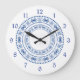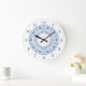 This wall clock features a pretty blue circular double heart design that gives this clock a country chic appeal. The design is repeated twice, with the inner circle being smaller. But designs are bordered in matching blue dots. The blue numbers on the outside make the clock easy to read.