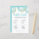 Check your purse for the items on the list. The person with the most points is the winner! | Add this fun "What in your purse" game card to your baby shower. This baby shower trivia game card features blue watercolor doughnuts with colourful sprinkles. Personalise by adding names, event and date. This blue doughnuts purse game is perfect for any baby shower season or theme.