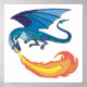 blue dragon breathing fire poster