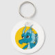 Keychain with illustration of head of a cute little blue dragon in yellow circle, cute fantasy / fairy-tale design for kids by Maxi Harmony,
